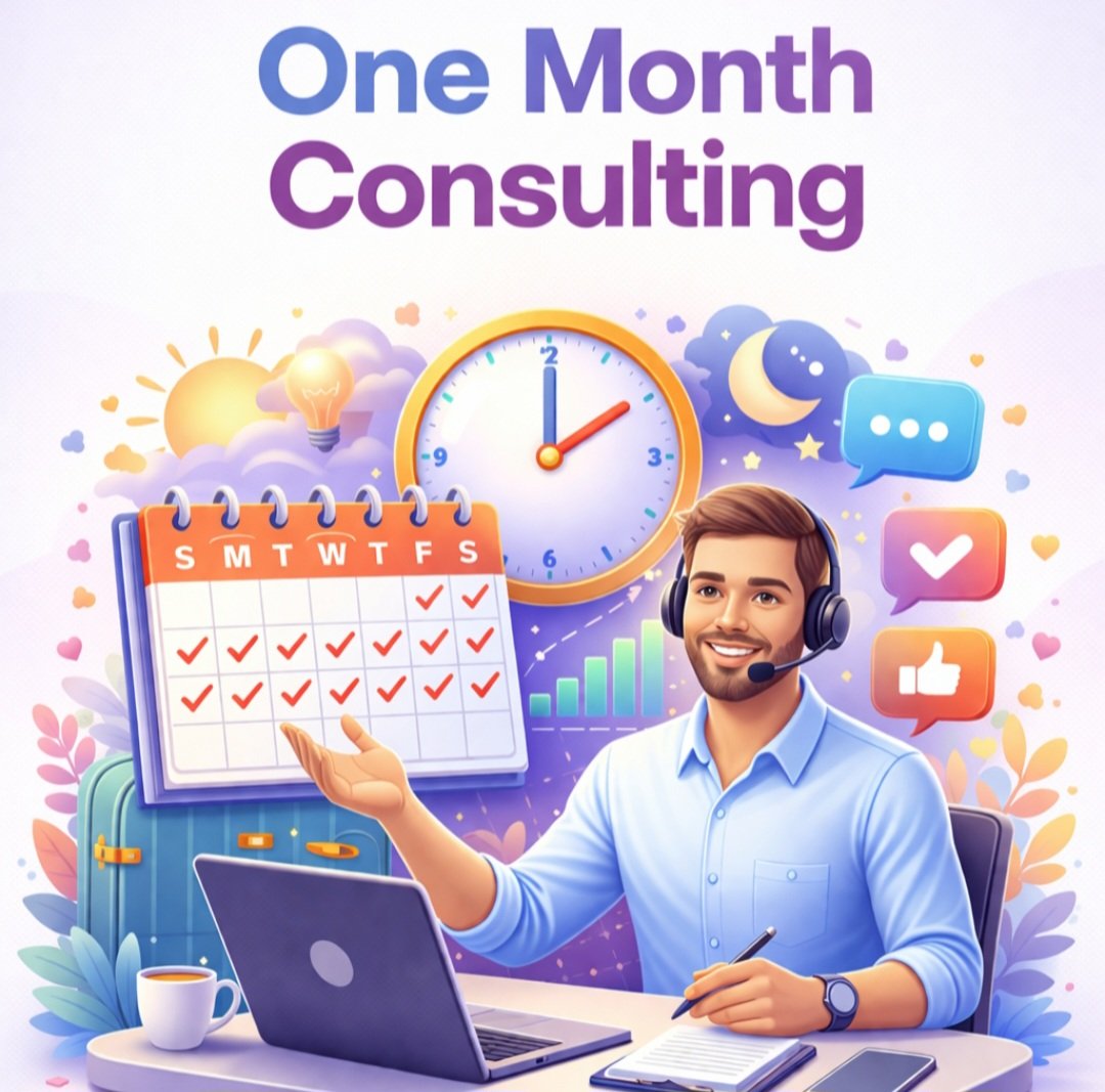 Our One Month Consulting Program is a premium, long-term guidance service designed for individuals who need consistent support, deep involvement, and structured progress over an extended period.